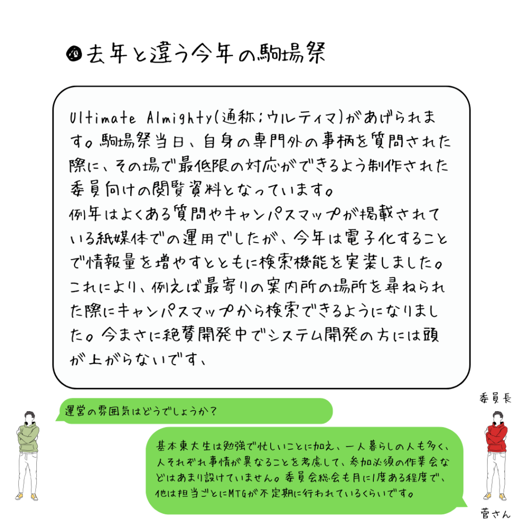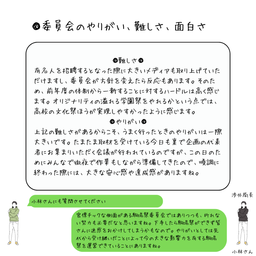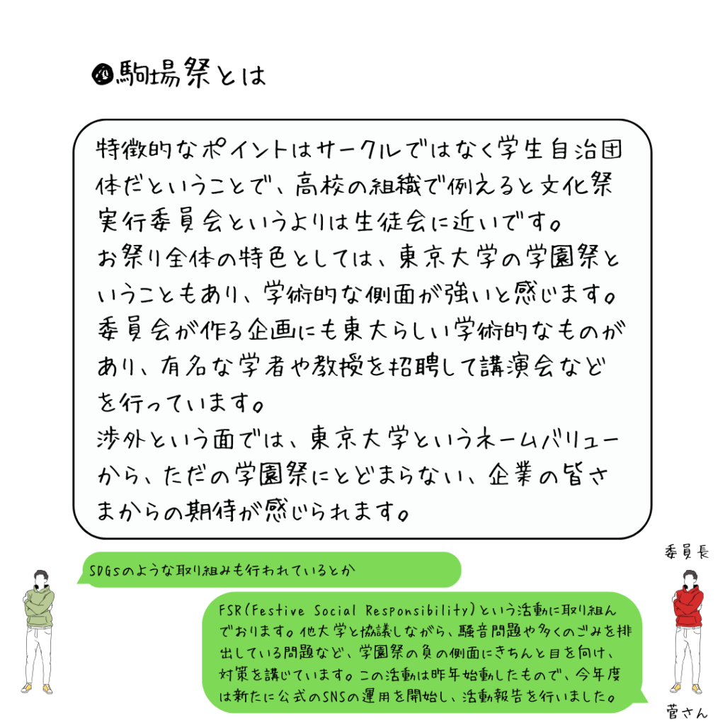 運営する「学祭メディア」において駒場祭委員のお二方へインタビューを行いました。