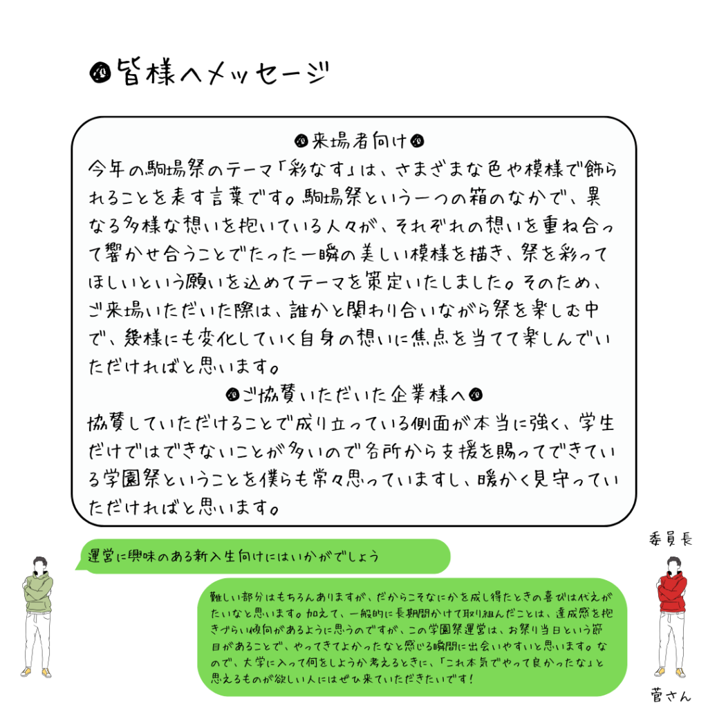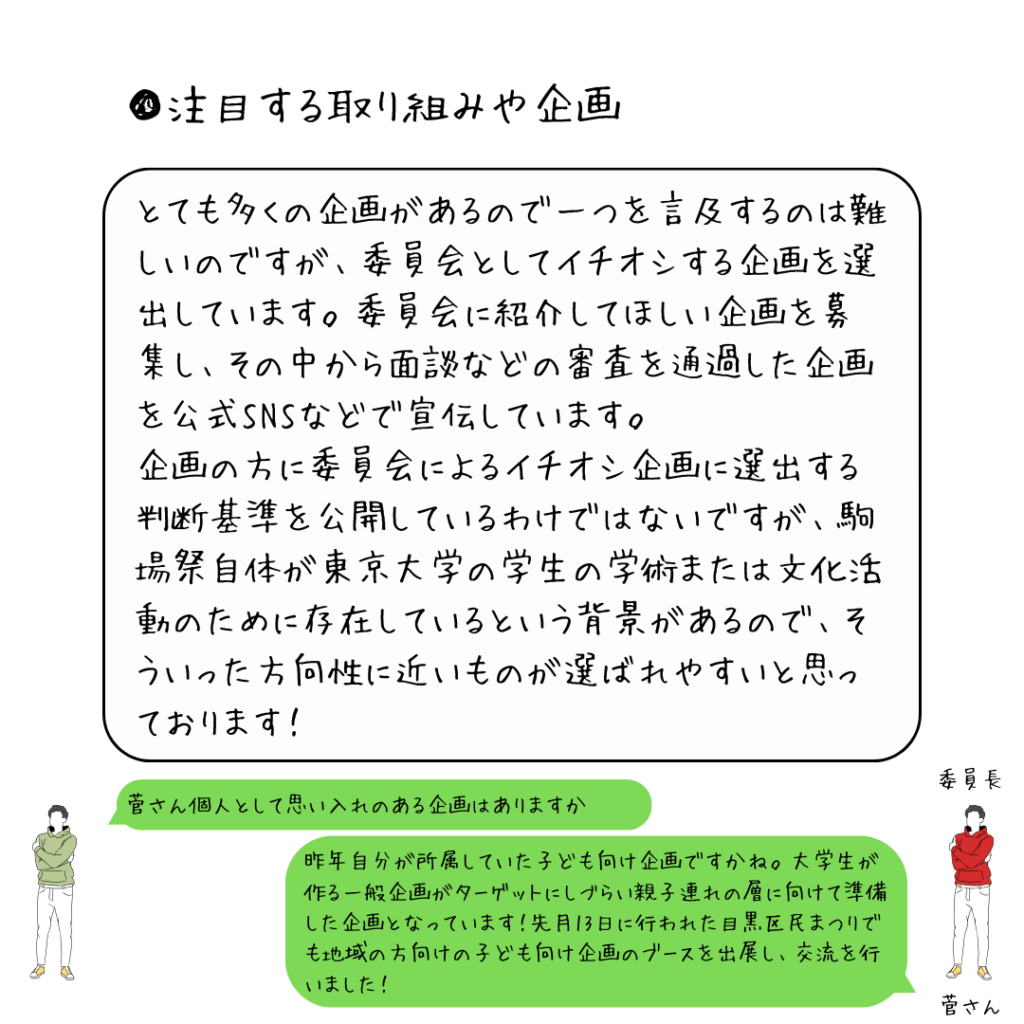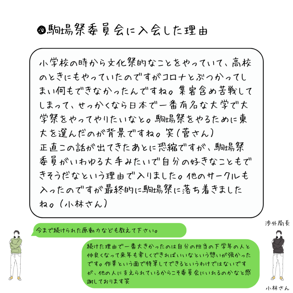 運営する「学祭メディア」において駒場祭委員のお二方へインタビューを行いました。