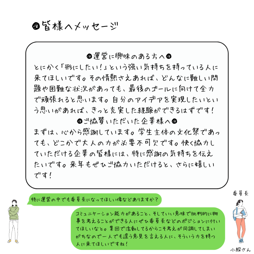 運営する「学祭メディア」において津田ヶ谷祭実行委員長へインタビューを行いました。